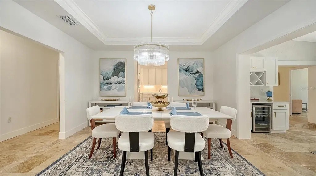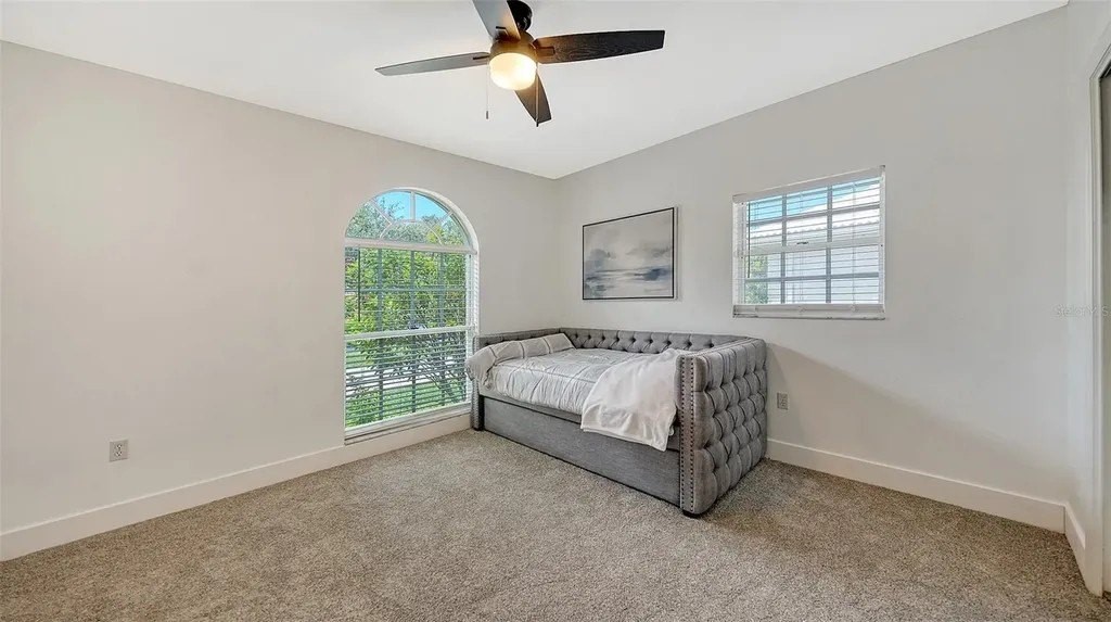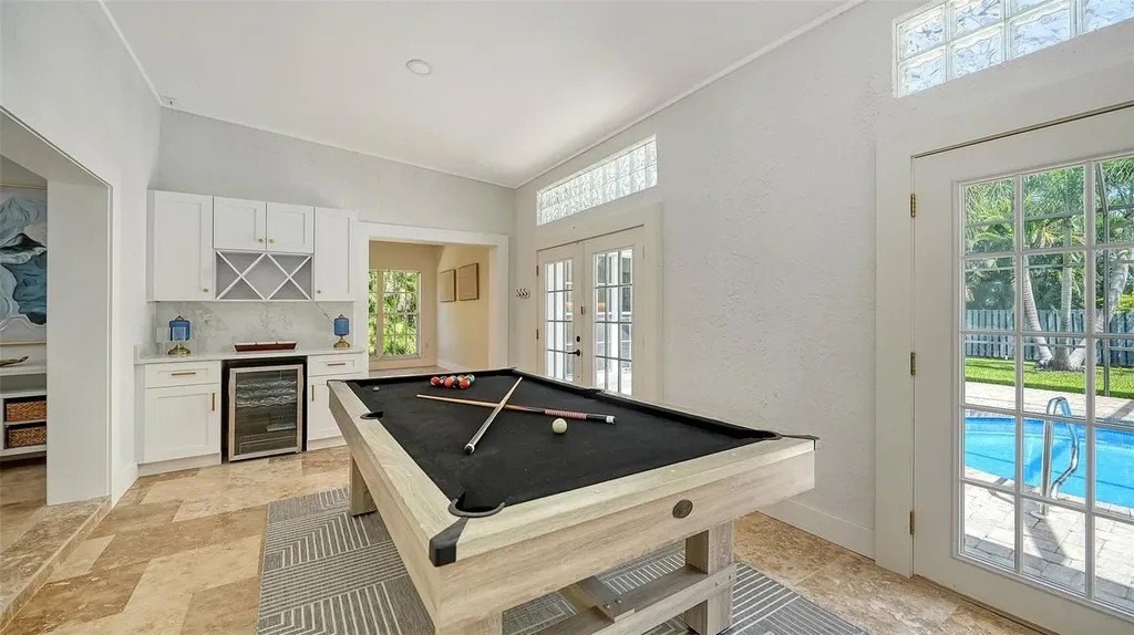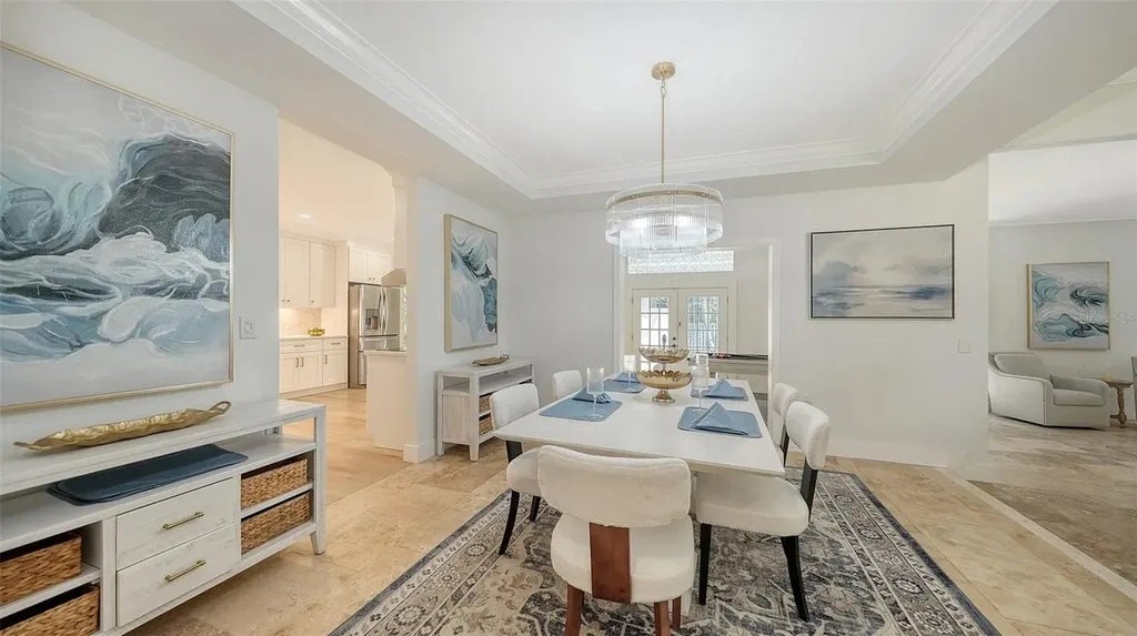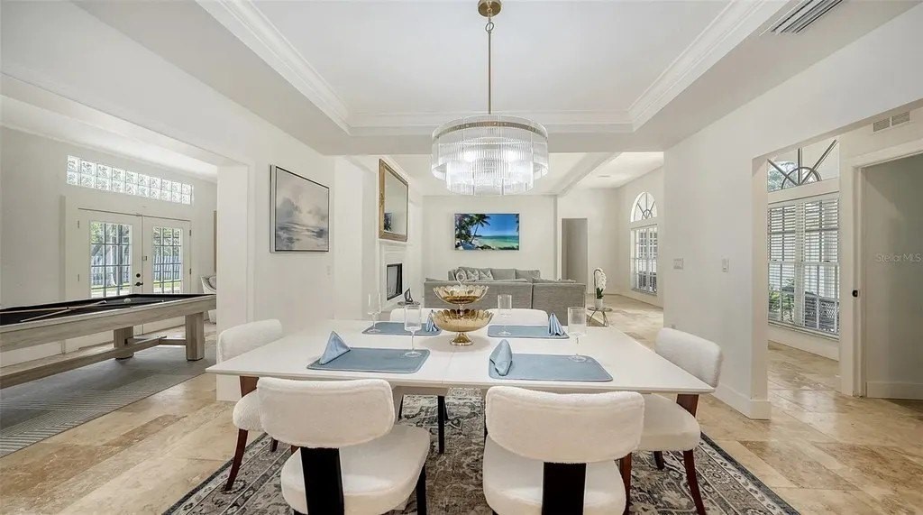 Tucked within the prestigious, gated enclave of Beneva Oaks, where centuries-old live oaks line meandering streets, this masterfully renovated home on a ½ acre lot offers incredible 2025 updates and a wonderful 4-bedroom, 3.5-bath, 1-story floor plan providing both grandeur and comfort across the expansive space. A circular drive framed by lush landscaping leads to the elegant entry of this modern residence, where refined upgrades blend seamlessly with timeless architectural features. Inside, travertine floors flow through the main living areas, while new designer carpet enhances the comfort of the bedrooms. The heart of the home is the extraordinary new eat-in kitchen featuring gleaming quartz countertops, crisp white wood cabinetry, stainless appliances including an induction cooktop, wide plank porcelain tile floor, and a custom tile backsplash. Accents like gold hardware, designer lighting, crown molding, and wide baseboards add the feel of luxury, while four sets of French doors connect the interior seamlessly with the lush exterior surroundings. An elegant dual-sided wood-burning fireplace with brick and tile surround and quartz and travertine hearths anchors the living and sitting areas, creating inviting spaces for conversation or quiet moments. With multiple entertaining areas designed for both intimate gatherings, grand-scale events or even a game of pool, the home's layout flows effortlessly from indoors to the screened lanai with paver deck, where a heated pool enhanced by Iconic Pools with sparkling new glass tile surface invites year-round enjoyment. The spacious primary suite, is a sanctuary unto itself, offering three walk-in closets with custom closet systems, and an extraordinary spa-inspired bath with bespoke tile work, frameless glass shower, gold fixtures, and a quartz-topped dual-sink vanity that exudes luxury. Two additional guest bedrooms enjoy new carpet, large closets, and generous natural light, while the newly redesigned guest bath impresses with design-forward flooring, quartz dual-sink vanity, and clean, modern finishes. The 4th bedroom can also be used as in-law suite, enjoying its own private French door entry and full bath with walk-in shower. The office with a custom built-in loft, closet, and a front facing window is ideal as a workspace, study, play, or creative escape. A chic updated powder bath adds further convenience. The thoughtfully designed laundry room features quartz countertops, utility sink, abundant cabinetry, and front-load GE Whirlpool washer/dryer. The oversized 2-car garage and beautifully landscaped grounds complete this exceptional property in one of Sarasota's most serene and sought-after neighborhoods. Located in a top rated school district, X flood zone and within close proximity to Sarasota's dining, shopping, culture, and the pristine Gulf of Mexico beaches, this exceptional property offers an unparalleled combination of design and craftsmanship in one of Sarasota's best-kept secret neighborhoods, presenting a rare opportunity to experience refined Florida living at its finest!